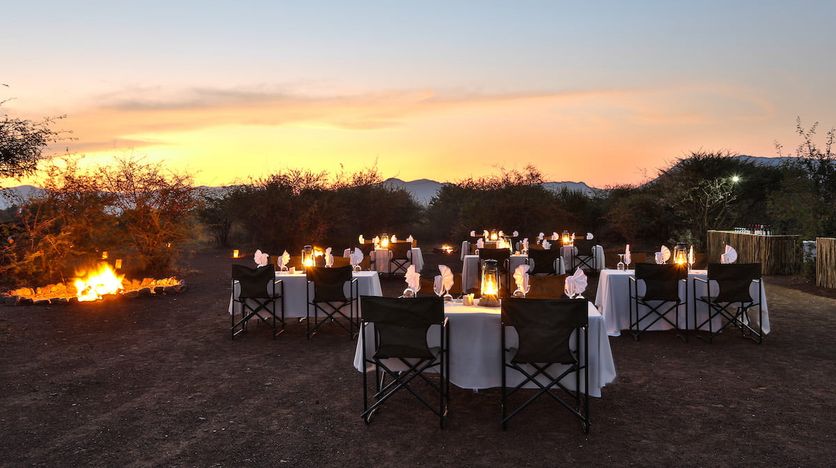 The bush dining experience at Ivory Tree Game Lodge is truly extraordinary. Nestled within the picturesque landscapes of the Pilanesberg National Park in South Africa, this dining adventure offers a unique and immersive encounter with nature. As the sun sets, guests are treated to a gourmet meal set up in a beautifully decorated outdoor setting, surrounded by the sights and sounds of the African bush. The aroma of delicious, freshly prepared dishes fills the air, while soft candlelight illuminates the table, creating an intimate and enchanting ambiance. The expertly crafted menu showcases a fusion of local flavours and international cuisine, using the finest ingredients sourced from the region. As you savor each exquisite bite, the rhythmic calls of distant wildlife and the crackling of a nearby fire create an unforgettable symphony of sensations. This bush dining experience at Ivory Tree Game Lodge is an absolute feast for the senses, offering an unparalleled connection with nature and a dining experience that will be cherished for a lifetime.